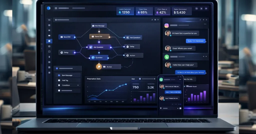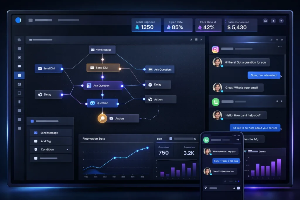 ManyChat is a chat automation platform built for marketing workflows inside messaging apps like: