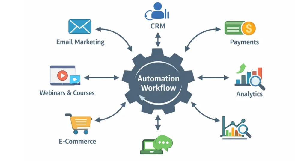 Everything—funnels, email marketing, automation, and course hosting—is available inside one platform.