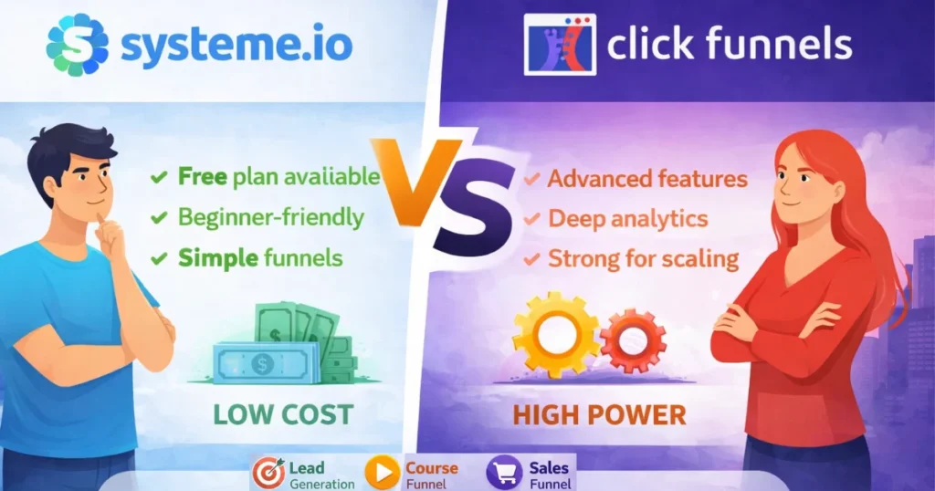 In this guide, we break down Systeme.io vs ClickFunnels based on pricing, features, automation workflows, and real business use cases so you can choose the platform that actually fits your goals.