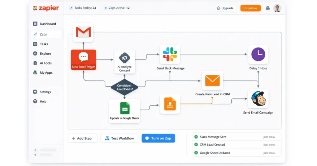 Instead of manually moving data between tools, Zapier automations run the process automatically.